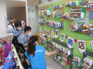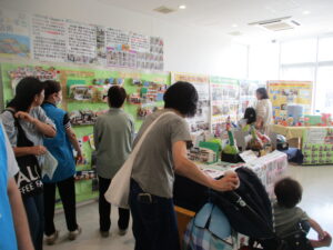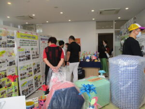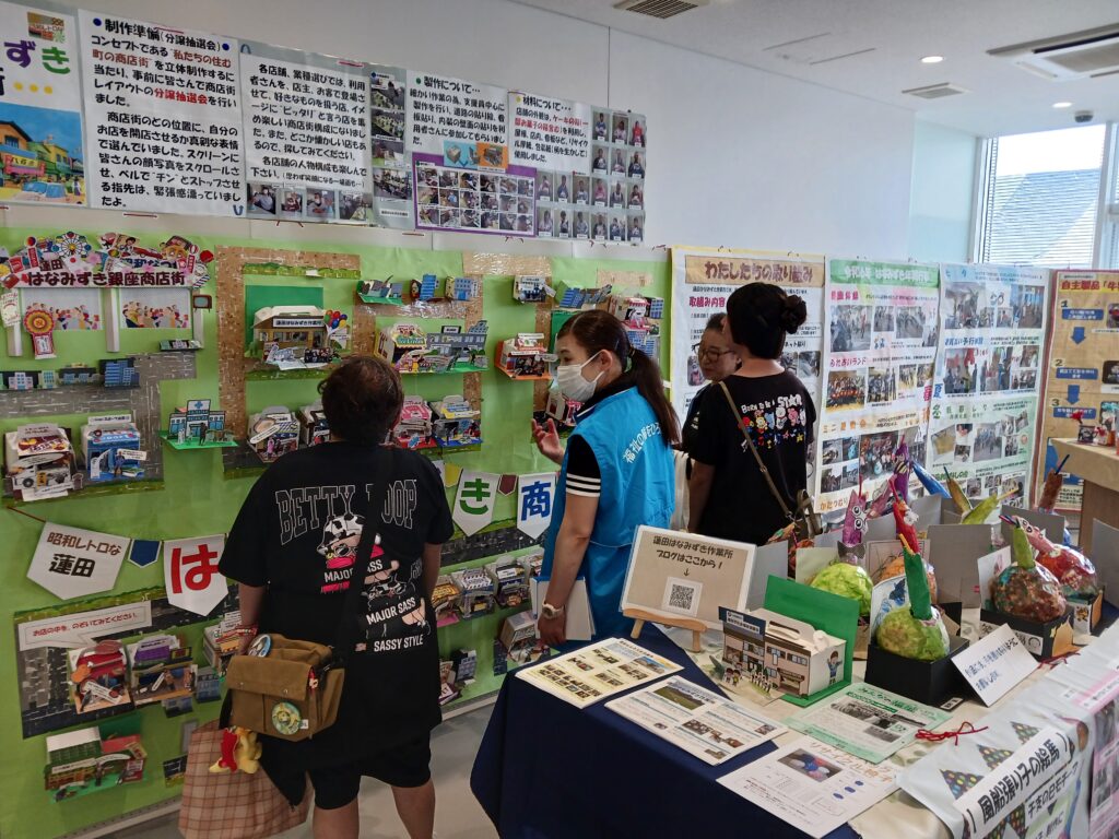 施設概要や活動内容、自主製品の紹介に加え、利用者と創作活動で作りあげた『はなみずき商店街』も展示しました。