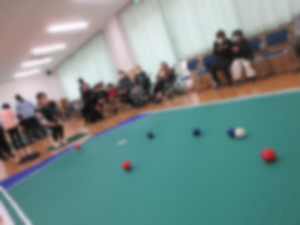 ボッチャはジャックボール(目標球)に赤・青のそれぞれのボールを投げたり、転がしたりして、