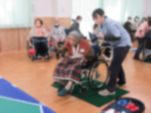 第2部は”ボッチャでふれあう”体験で、特別養護老人ホーム共生の家の入居者にも参加いただき『ボッチャ』を楽しみました。